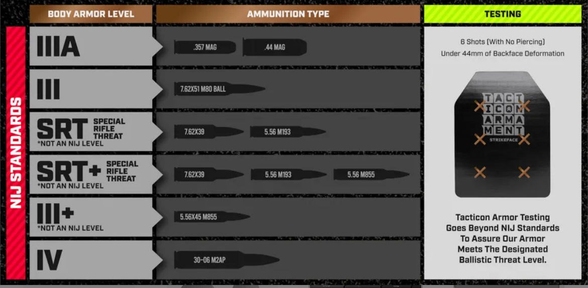 All of our ballistic plates are made here in the United States by a veteran owned body armor manufacturing company Tacticon Armament. Our body armor is NIJ certified, and each plate is batch tested to ensure quality of product.